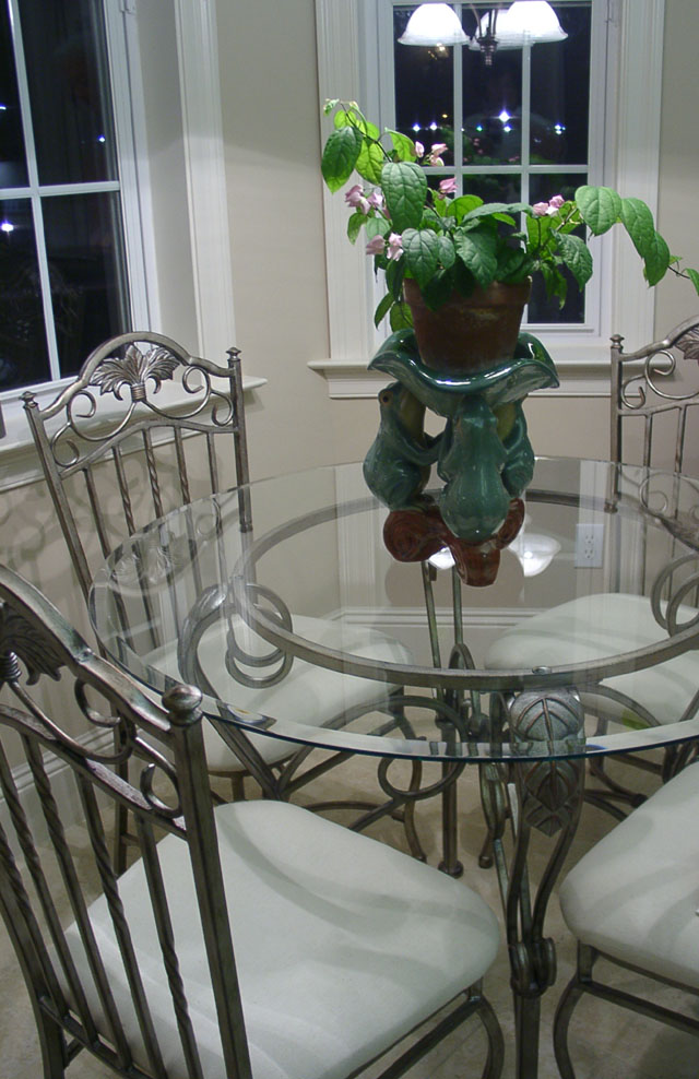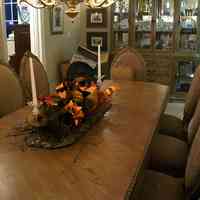 This is one of two windows in the house without windows. Ms. Ritchie modeled the windowless dining room after the dining room at Trader Vic's in the Capitol Hilton in Washington, the place where the Watergate cover-up was planned. The chandelier above the table is a replica of chandeliers found in Savannah.