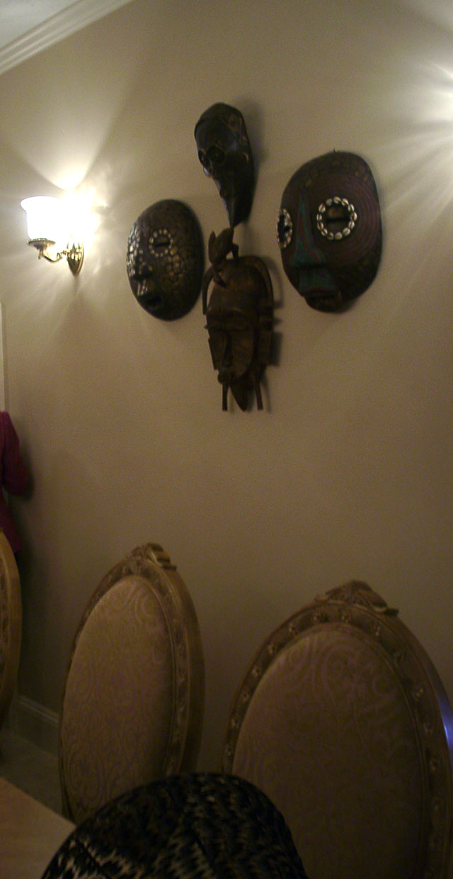 All the wall are African masks representing differemt tribes and different countries.