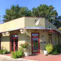 The informal dining area is adjacent to the kitchen. The back door leads out to the rear courtyard and the carriage house or garage. Unlike many houses in Aragon, Ms. Ritchie has chosen not to create a second story to her carriage house in order to preserve her view of Escambia Bay.