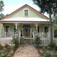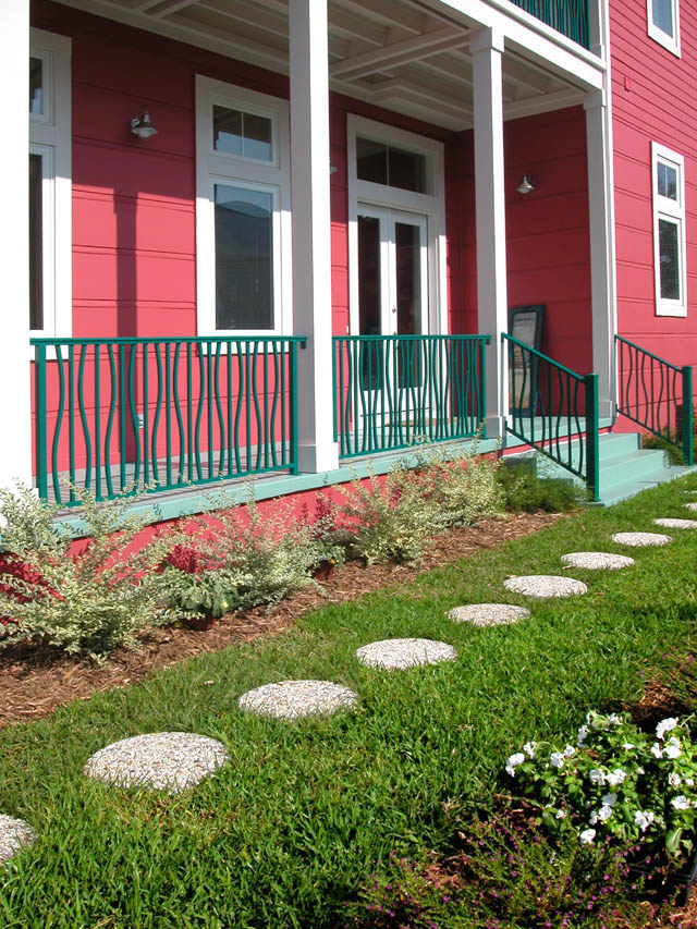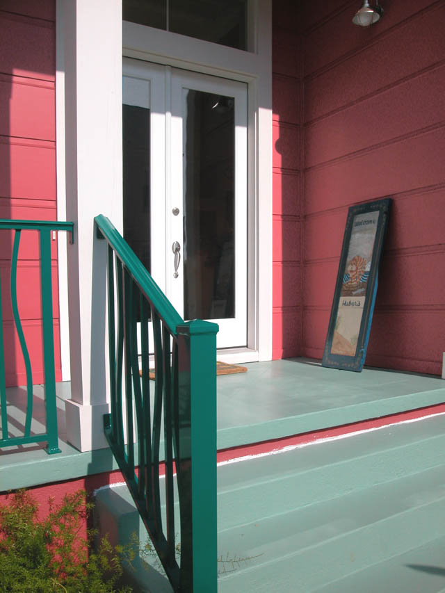 The interesting form of the iron gate allows limited access to the side porch.