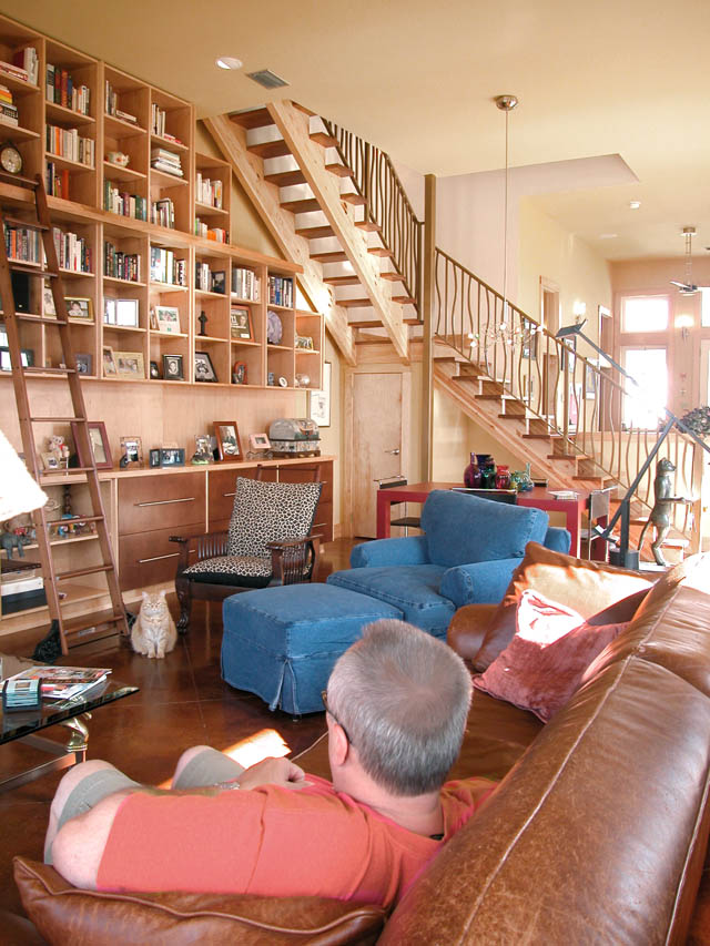 John Huber designed the floating staircase in the center of the downstairs living area.