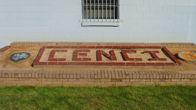 The signature brick sign was made by inmate labor and is located adjacent to the Security Building. -