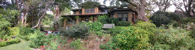 The home was built in 1934. An auxillary apartment was added on the west side of the house during World War II to assist with the housing crisis according to a government mandate. The house is situated on a bluff 60 feet above the entrance to Bayou Texar.