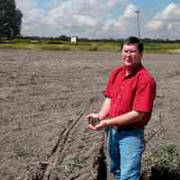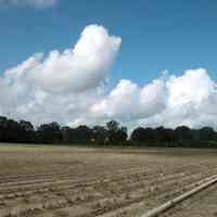 The irrigation line bisects a thirty acre field. The southern portion, show above, has been planted with pumpkins. The line of deciduous trees grow along Homer Holland Road. -