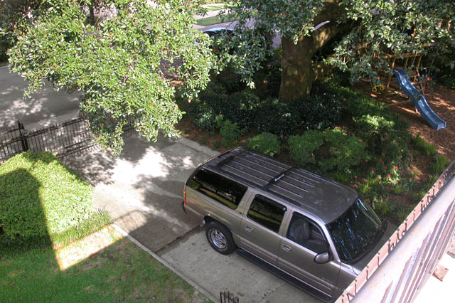 This is a view from the porch adjacent to the master bedroom overlooking the front yard.