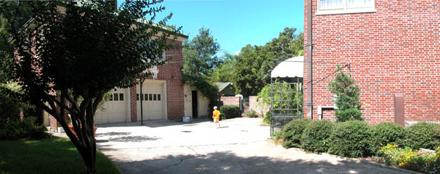 There is a service alley to the south of the property. The carriage house can be seen on the left of the frame.
