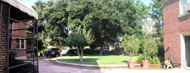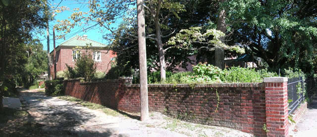 This is the view of the neighborhood from the corner of the service alley on Baylen Street.