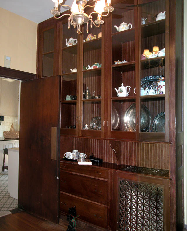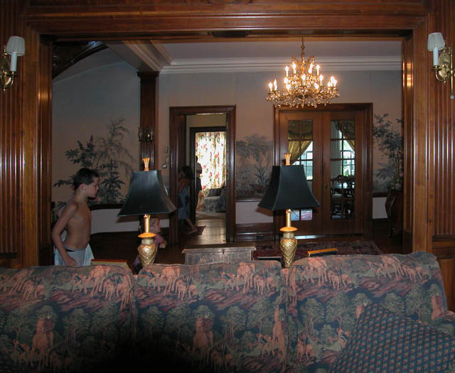 A unique glass and wrought-iron awning shelters the Florida Room entrance.