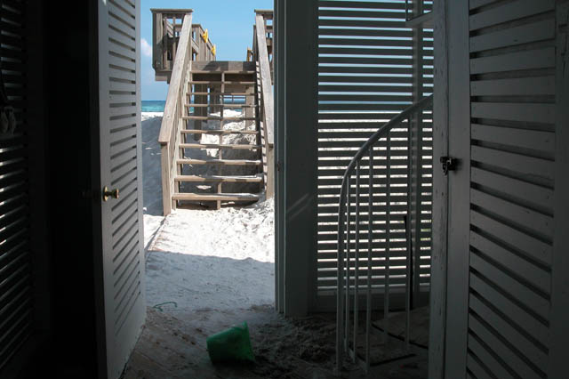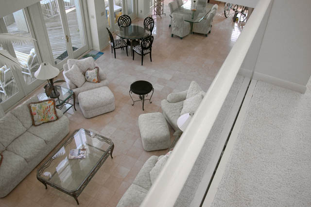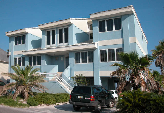 The home is located on Pensacola Beach. There are 5,000 square feet of living space on the second and third floors. Twenty-five hundred square feet on the first floor is undergoing renovation. There are 5 bedrooms, 3 1/2 baths in the upper stories. An elevator services all 3 floors.