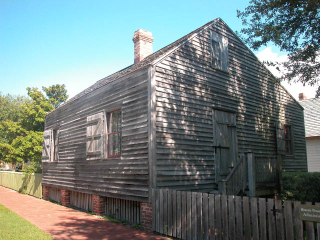 The side of the cottage faces Zaragoza Street. The house is a rare example of "to the sidewalk" buildings of Spanish origin found from New Orleans to Pensacola.