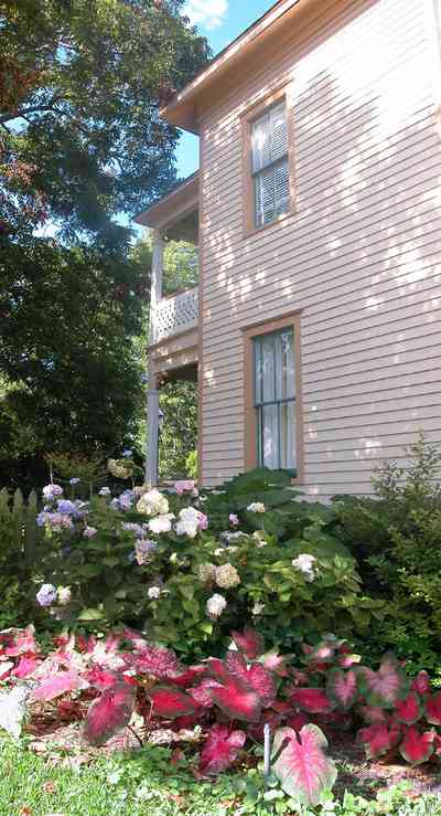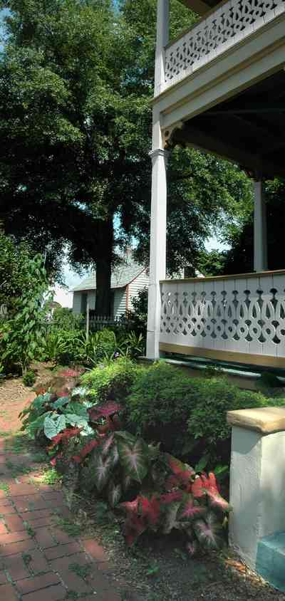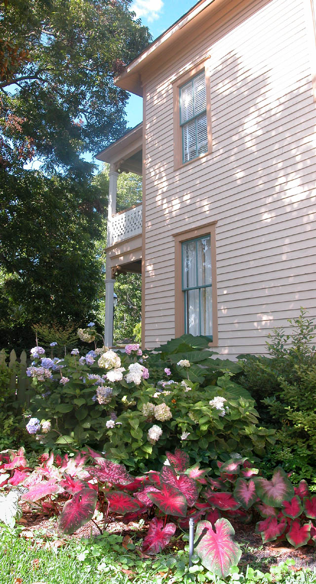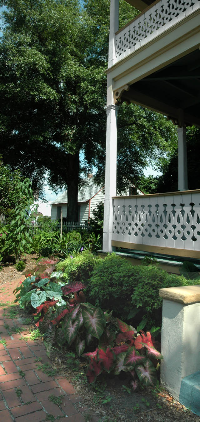 The gardens around the house are tended by the Escambia County Master Gardeners. A bed of caladiums wrap around the west side of the house.