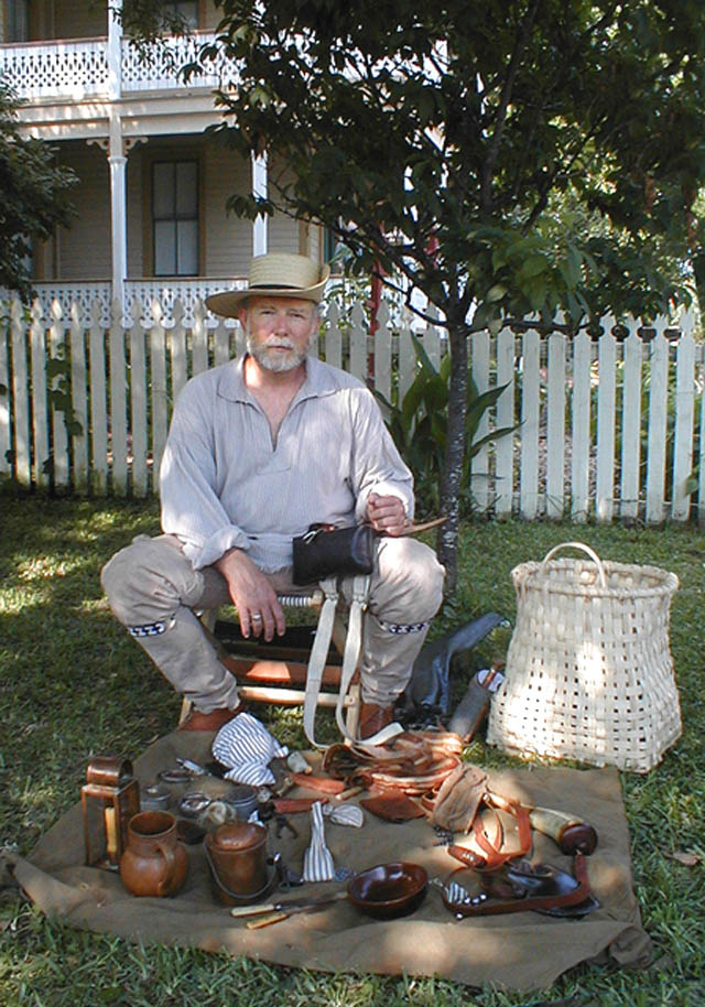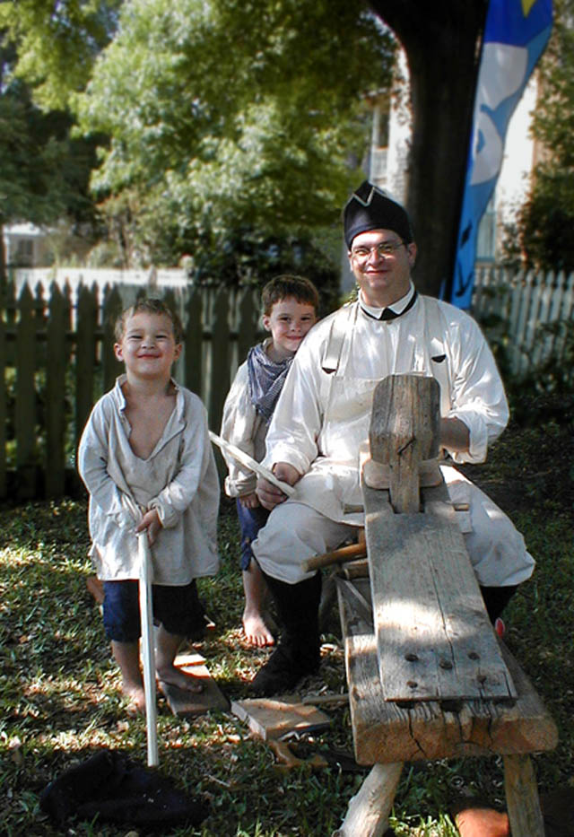 Tom Garret portrays a 1812 US Infantryman and woodworker. He is accompanied by his two sons who are also in period dress.