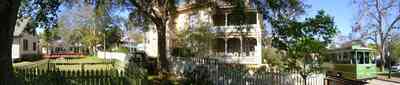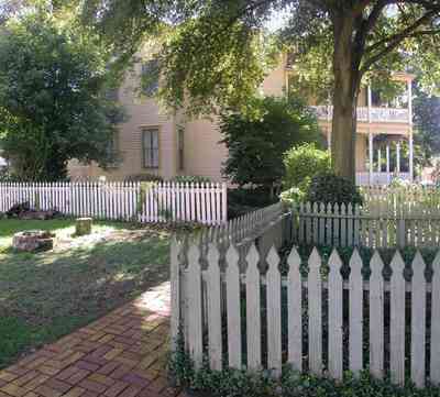 A picket fence marks the boundary between the Lear-Rocheblave House and the Julee Cottage. The picket fence in the foreground surrounds the old well.