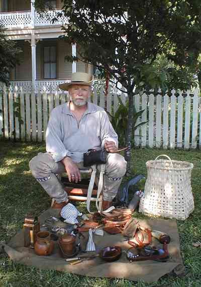Eddie Rogers demonstrates the skills and materials used by an 1812 militiaman.