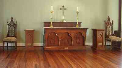 The altar is the original which was returned to Christ Church in the mid-1970’s. The chancel chairs came from a church in Detroit are are dated 1870.