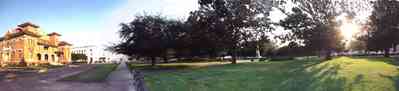 This is a view of the east facade of the T. T. Wentworth Museum. The Pensacola Historical Museum is located in the left corner of the photograph. -