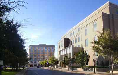 The Federal Courthouse is on the right of the photo. The Brent Building, in the center is located at the intersection of Palafox and Garden Street.