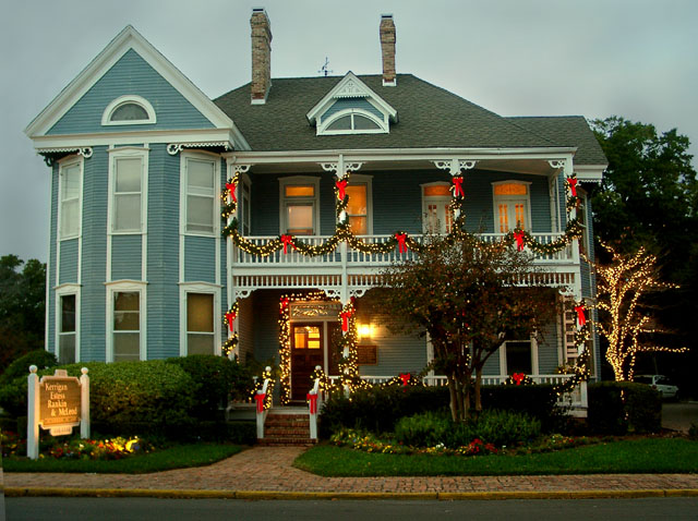The law firm is lavishly decorated and trimmed with garland for Christmas 2001. -