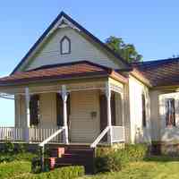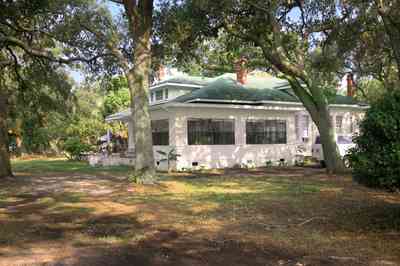 The home is one of the largest in the neighborhood and has a commanding view of the bay. It is an example of a prairie style that emphasizes the horizontal. With wings spread out to the side and low hip roofs with overhangs, the structure seems to hug the ground. Prairie homes are considered contemporary. The style was midwestern but spread across America through plan books and magazines such as the Ladies Home Journal. It was popular from about 1900 through the 1920's.