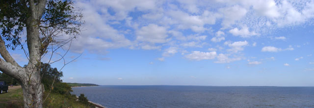 The only known example along the Gulf Coast of red clay bluffs are along the eastern shore of Escambia Bay. They represent the highest point along the entire coastline of Florida. This feature caused the earliest Spanish explorers to establish the first settlement in the sheltered bay near the bluffs in 1559. Scenic vistas are a highlight as the road winds for 11 miles through parks and nature preserves. Scenic Highway extends from the Bayou Texar Bridge to the north end of the U.S. 90 Bridge across the Escambia River.
