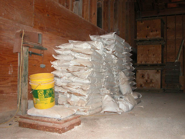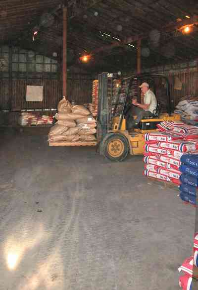 Fertilizer is stored, mixed and sold in a seperate building. The bags shown above are loaded by hand after customing the mixture of the elements, such as, amonium nitrate, potash, etc. -