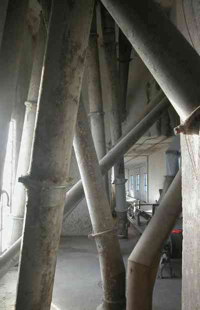 The pipes feed into 18 different bins, storing individual items, such as, wheat oats, milo, soybeans and corn. Corn is the main item in storage at the elevator. -