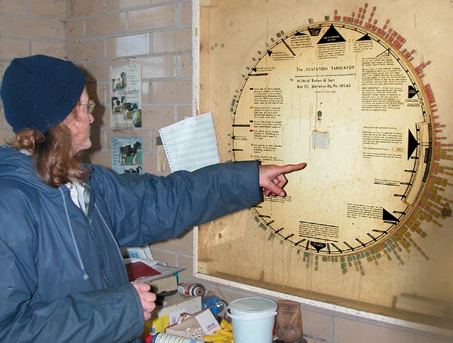 Jan explains the gestation tabulator. The cycles and pregnancy of each cow is plotted. -