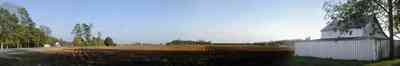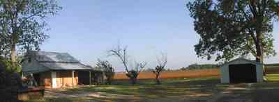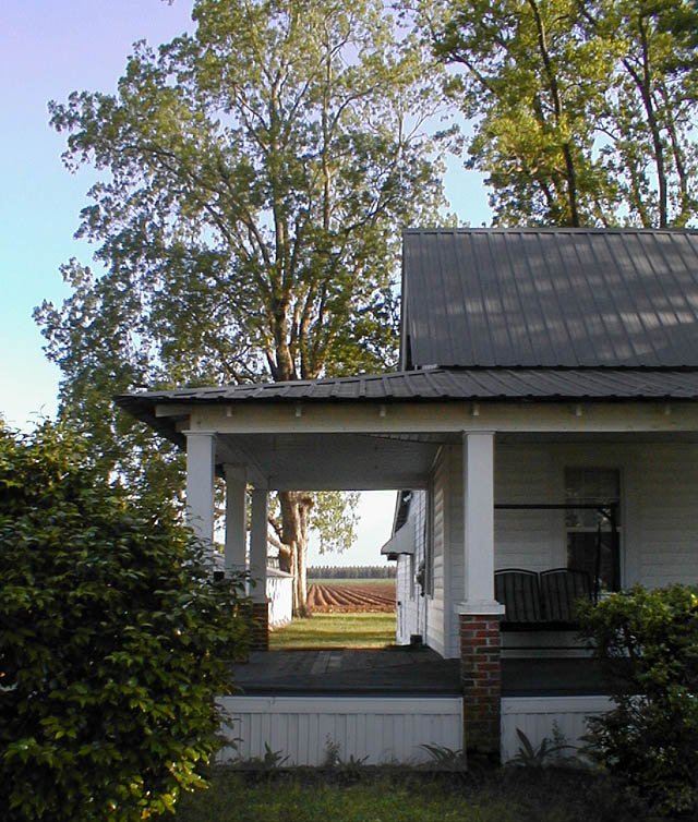 The fields can be seen from the side porch. -