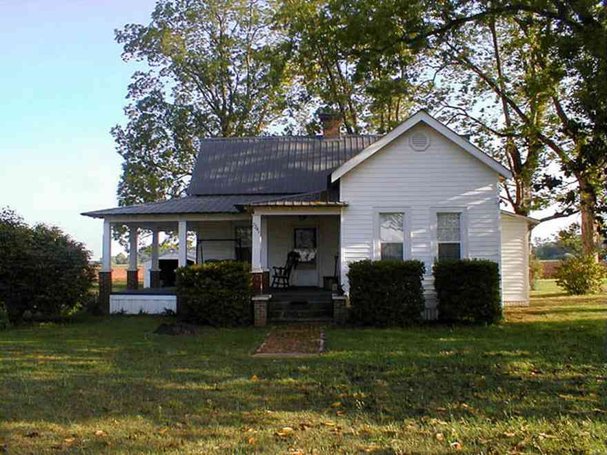The small farmhouse exhibits traditional Craftsman architectural style. -