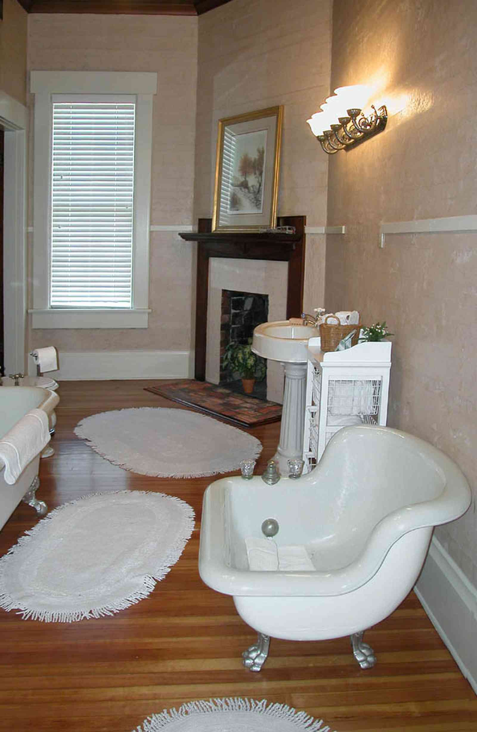 Some of the bath fixtures are unusual, such as the childs tub in the foreground.
