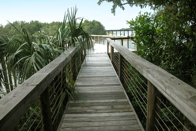 • East-Hill:-1801-East-La-Rua-Street_14.jpg:  deck, pier, boat house, palmetto bush, oak tree, railroad trestle, pensacola bay, bayou texar