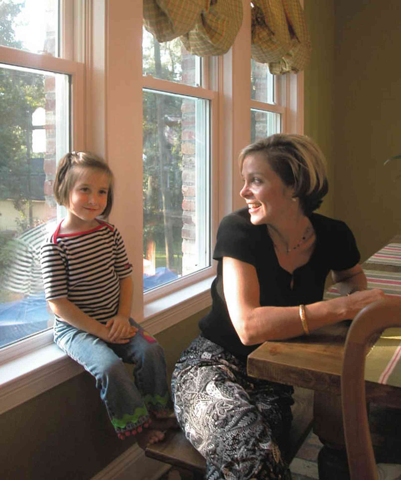 Libby Adams perches in the window.