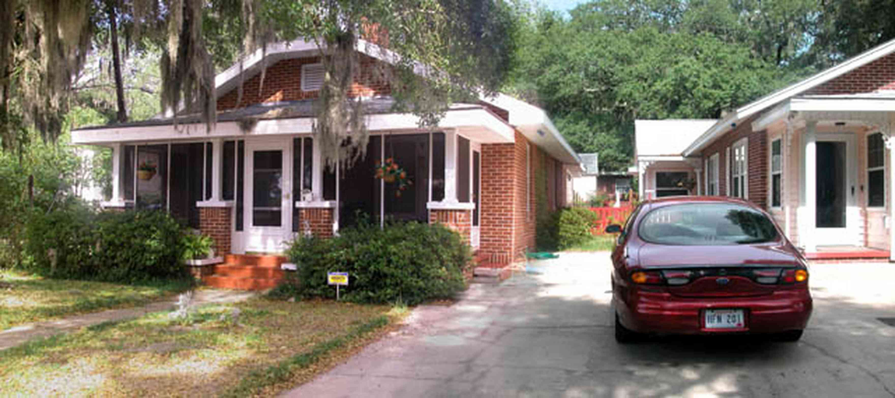 • East-Pensacola-Heights:-118-Bayou-Blvd_01.jpg:  craftsman cottage, spanish moss, bayou texar, oak tree, red brick house