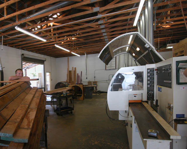 The equipment on the right of the photograph is used to mill tongue and grove lumber for flooring.