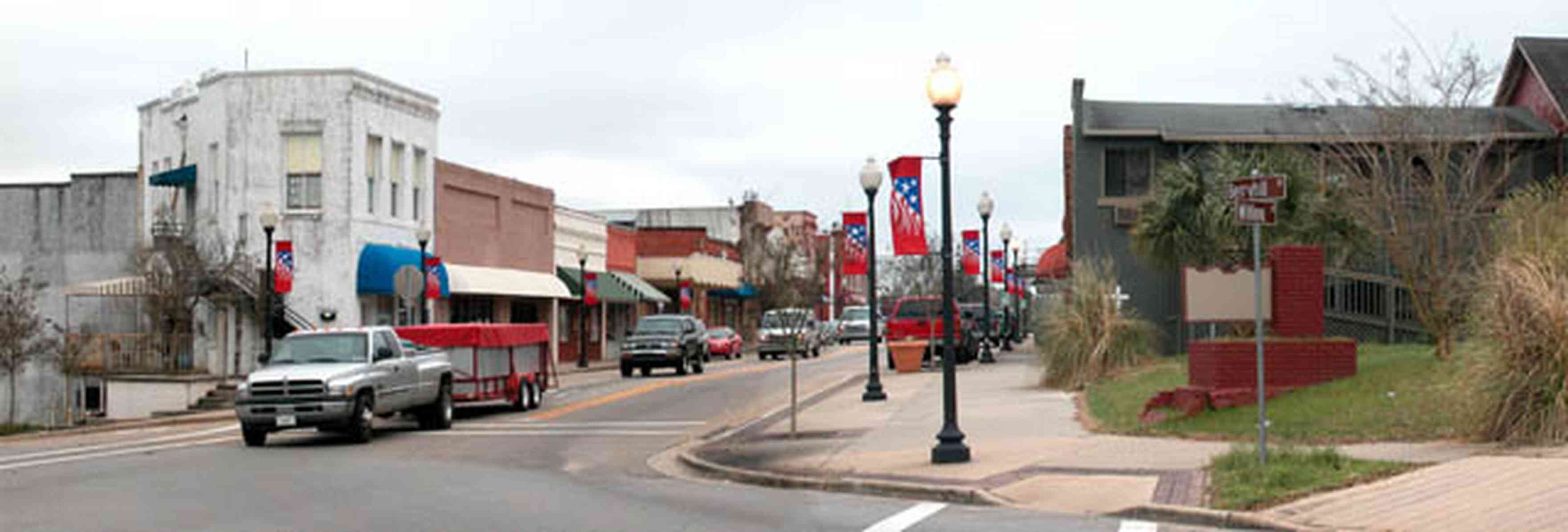 The downtown historic district joins the Blackwater River. Many of the restored storefront buildings can be seen on Willing Street.