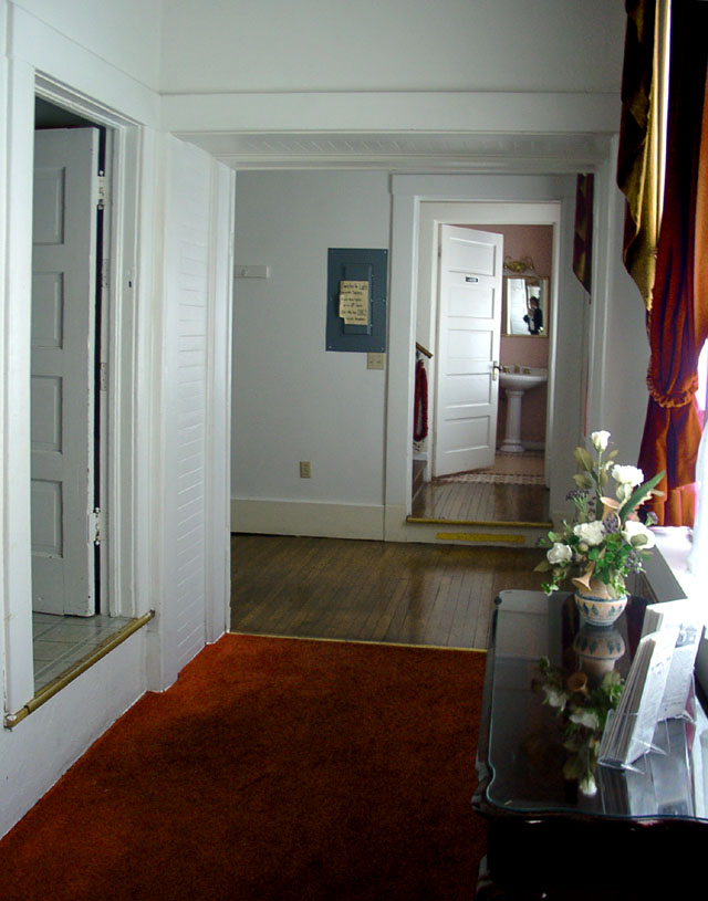 The door on the left accesses balcony seating. Bathrooms are located on the second floor.