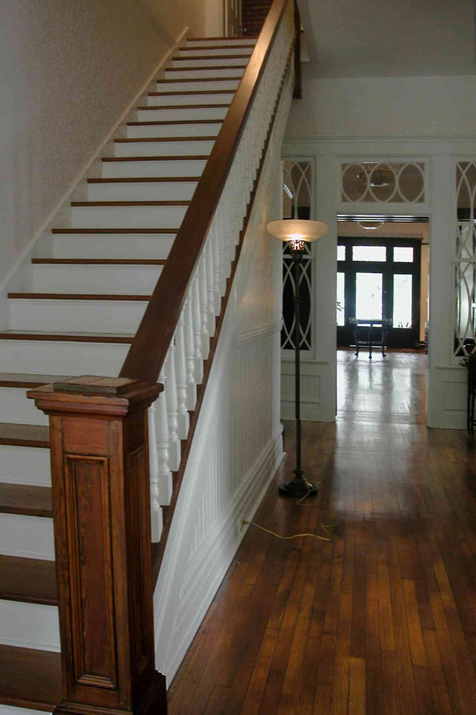 • North-Hill:-116-DeSoto-St_02g.jpg:  staircase, central hall, floor lamp