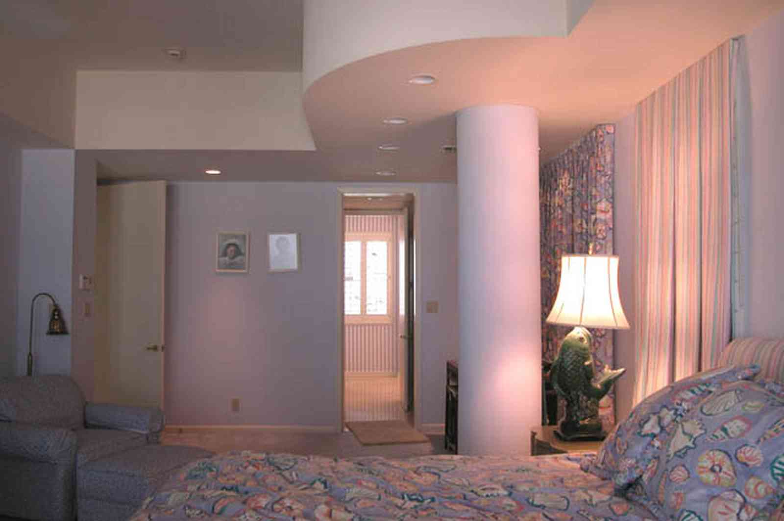 • Pensacola-Beach:-1212-Ariola-Drive_11.jpg:  beach house, gulf of mexico, pensacola beach, curved walls, pleated drapes, fish lamp, 1950's lamp