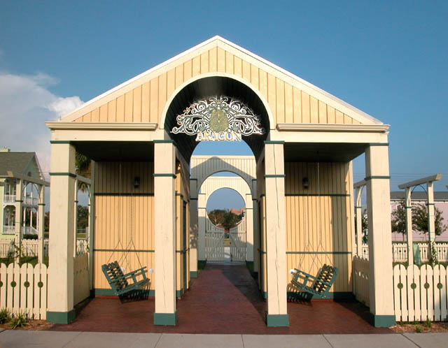 • Aragon:-Childrens-Playground_02.jpg:  porch swing, columns, playground, picket fence, arbor, arch