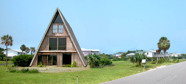 • Pensacola-Beach:-Rio-Vista-Drive_05.jpg:  a-frame house, palm trees, beach front house