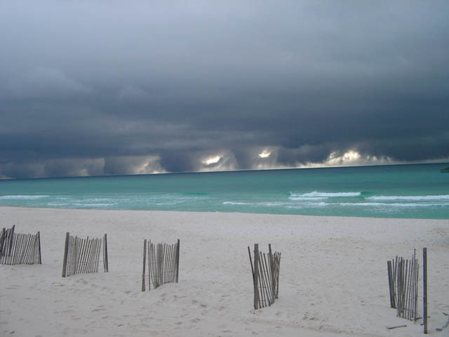 The short fences were installed after recent storms to promote dune formation by trapping blowing sand.