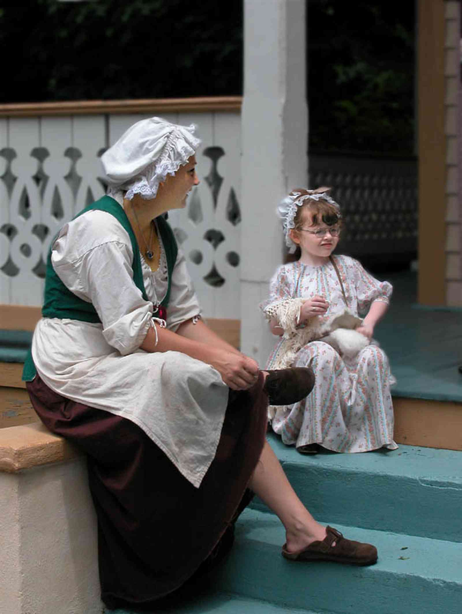 Colonial re-enactors give tours of the house during the yearly open house at the village.