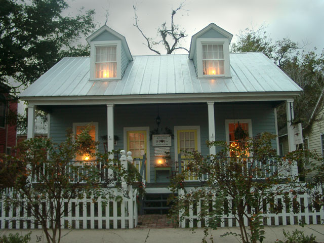 • Pensacola:-Seville-Historic-District:-Estate-Jewelry_03.jpg:  picket fence, candles, wreath, victorian gulf coast cottage
