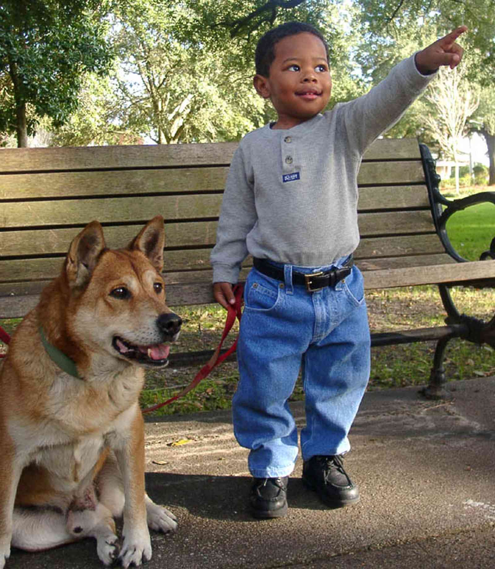 Nathan Savage points out a squirrel in a nearby oak tree to Sugarfoot.