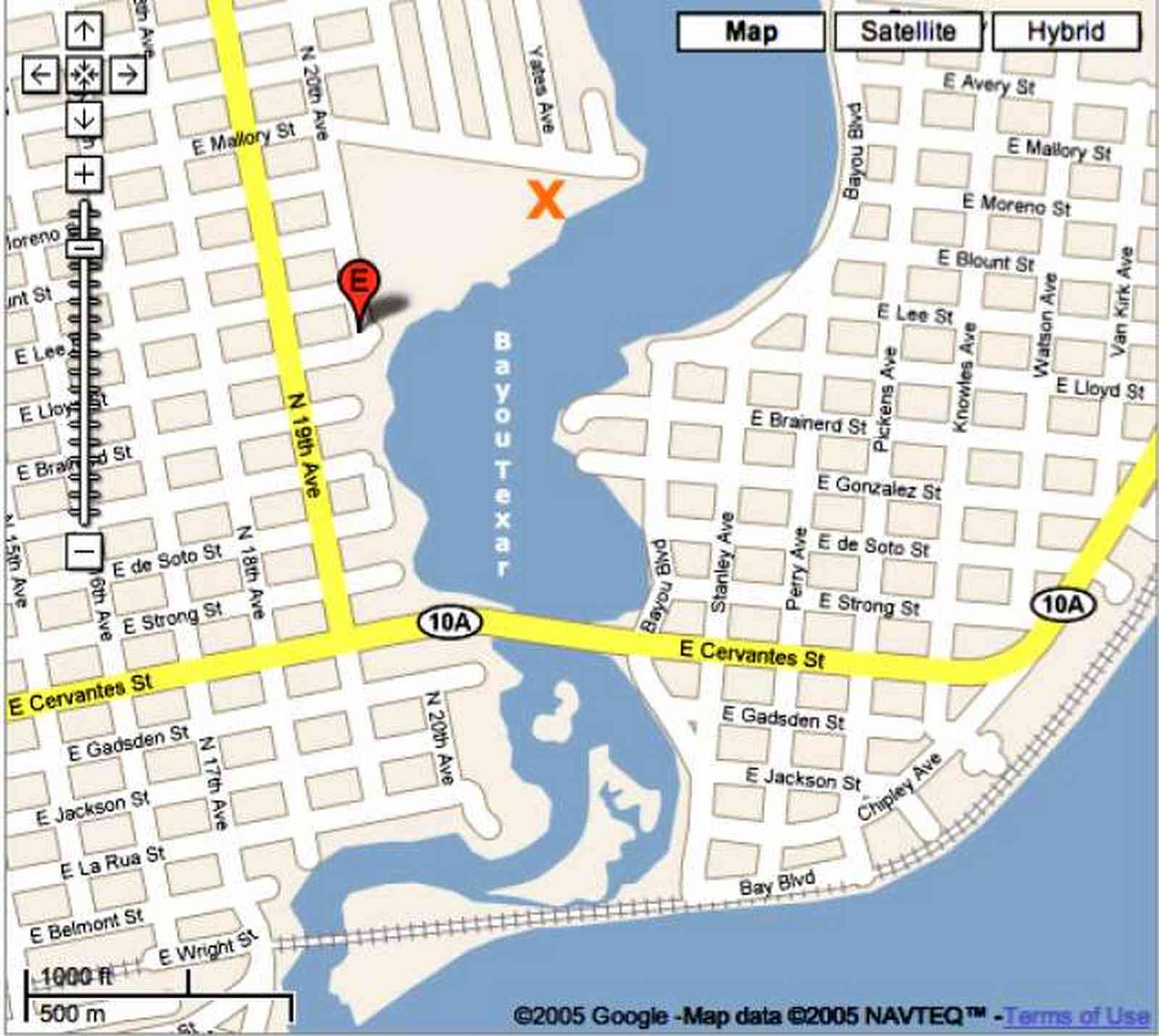 As this map shows, Bayou Texar has a very narrow outlet and is surrounded by hundreds of homes. The water is deep enough to accomodate some fairly large fishing boats but the train trussle at the opening to Pensacola Bay prevents sail boats from mooring on Bayou Texar.