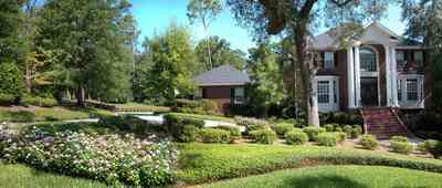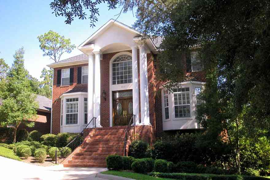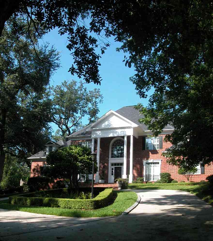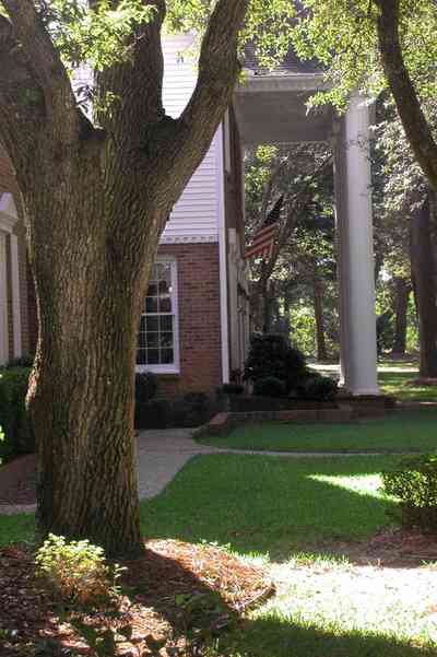 The colonial style home sits atop a small hill adjacent to Scenic Highway.