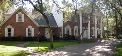 The house is on the south side of Canopy Road just inside the entrance to the Oak Hollow development.