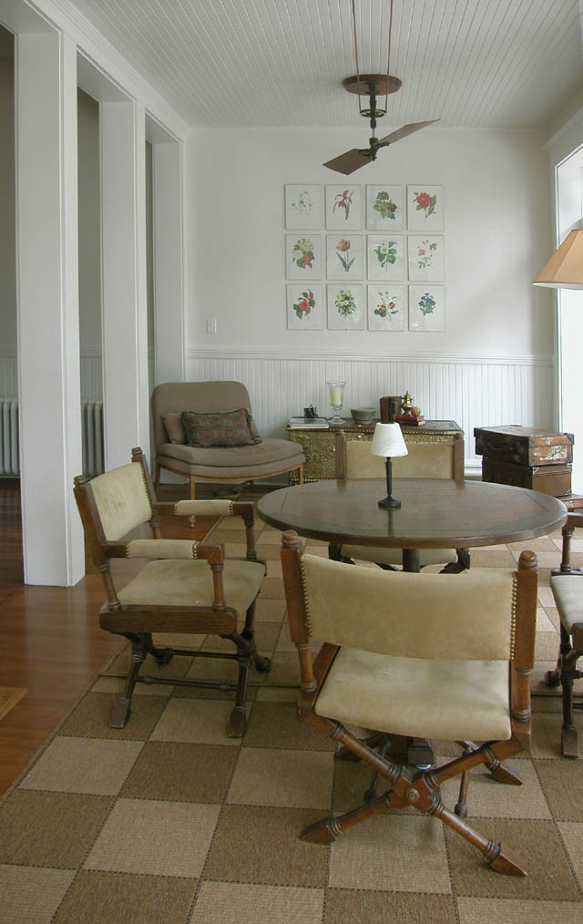 The original concrete porch flooring was replaced with pine wood by Ron Berthelot.