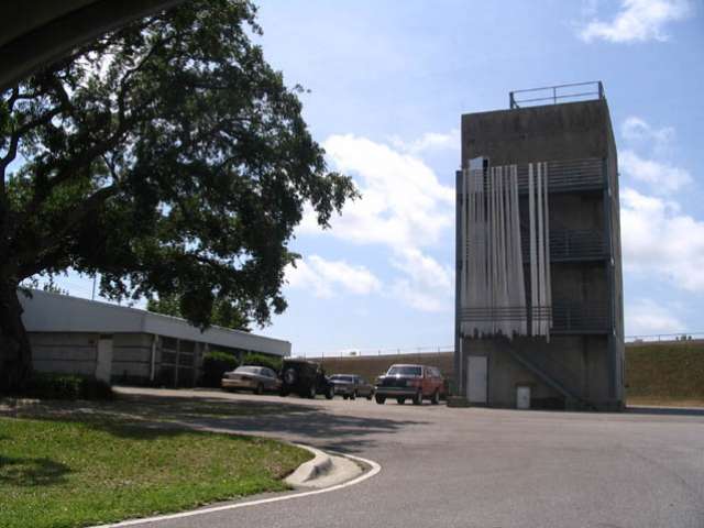 The raised portion of Navy Blvd. can be seen behind the tower. The Highway goes over some rail road tracks just west of the tower location.
