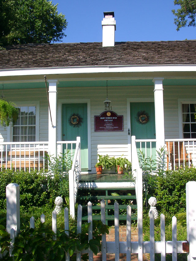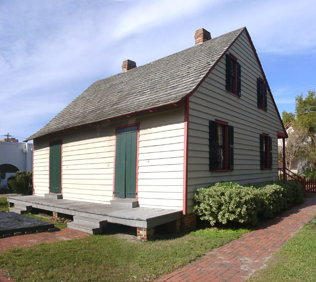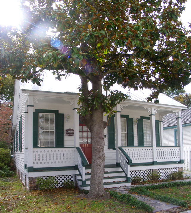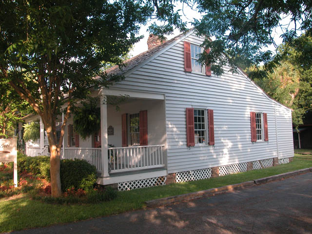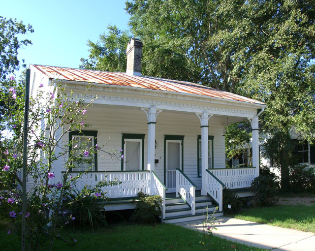 The house is a good example of a French Creole Cottage. It is rectanglular design with a central hallway and high ceilings.